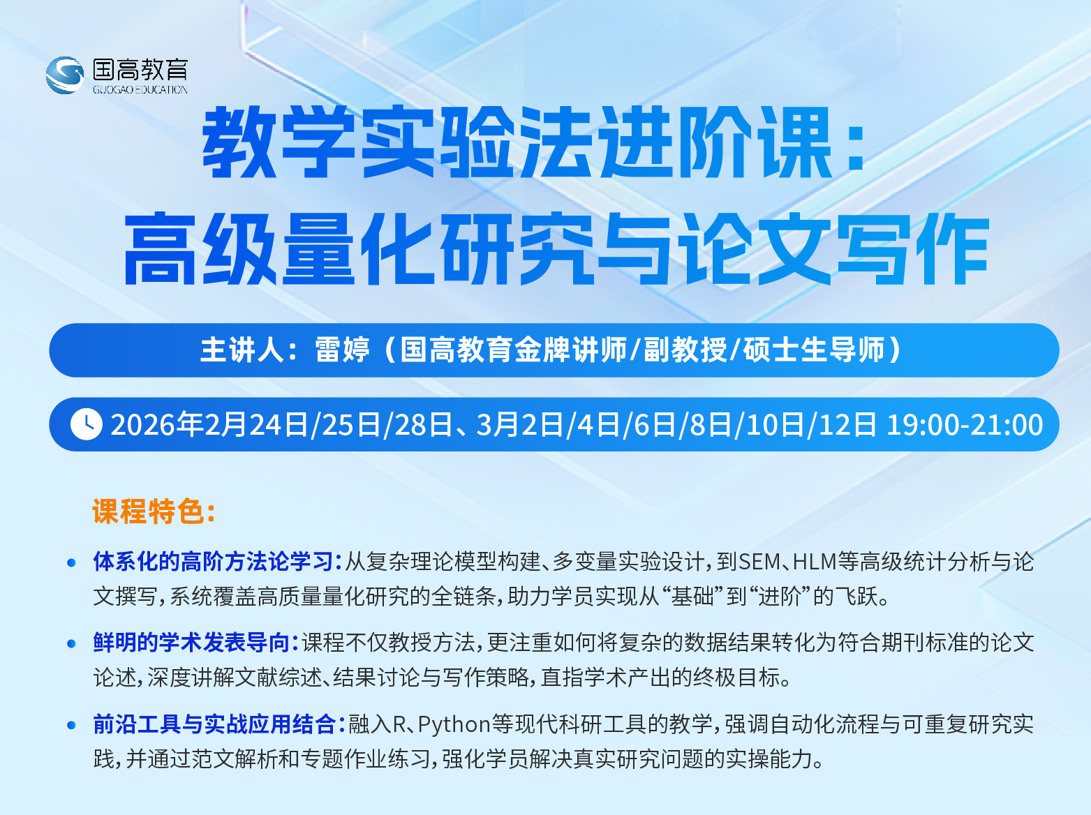 教学实验法进阶课:高级量化研究与论文写作