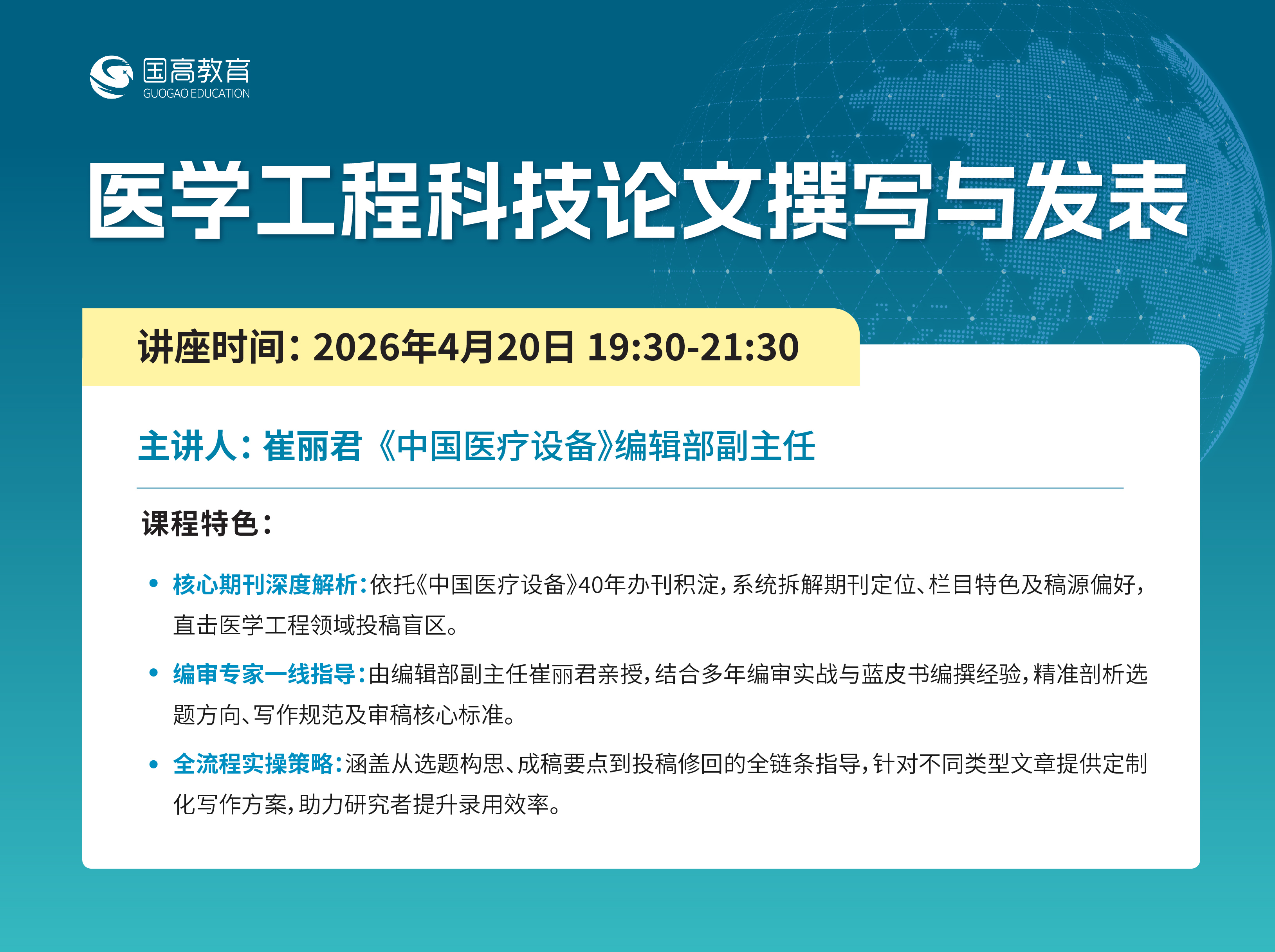 04-20 19:30 - 01:30 第353讲:医学工程科技论文撰写与发表